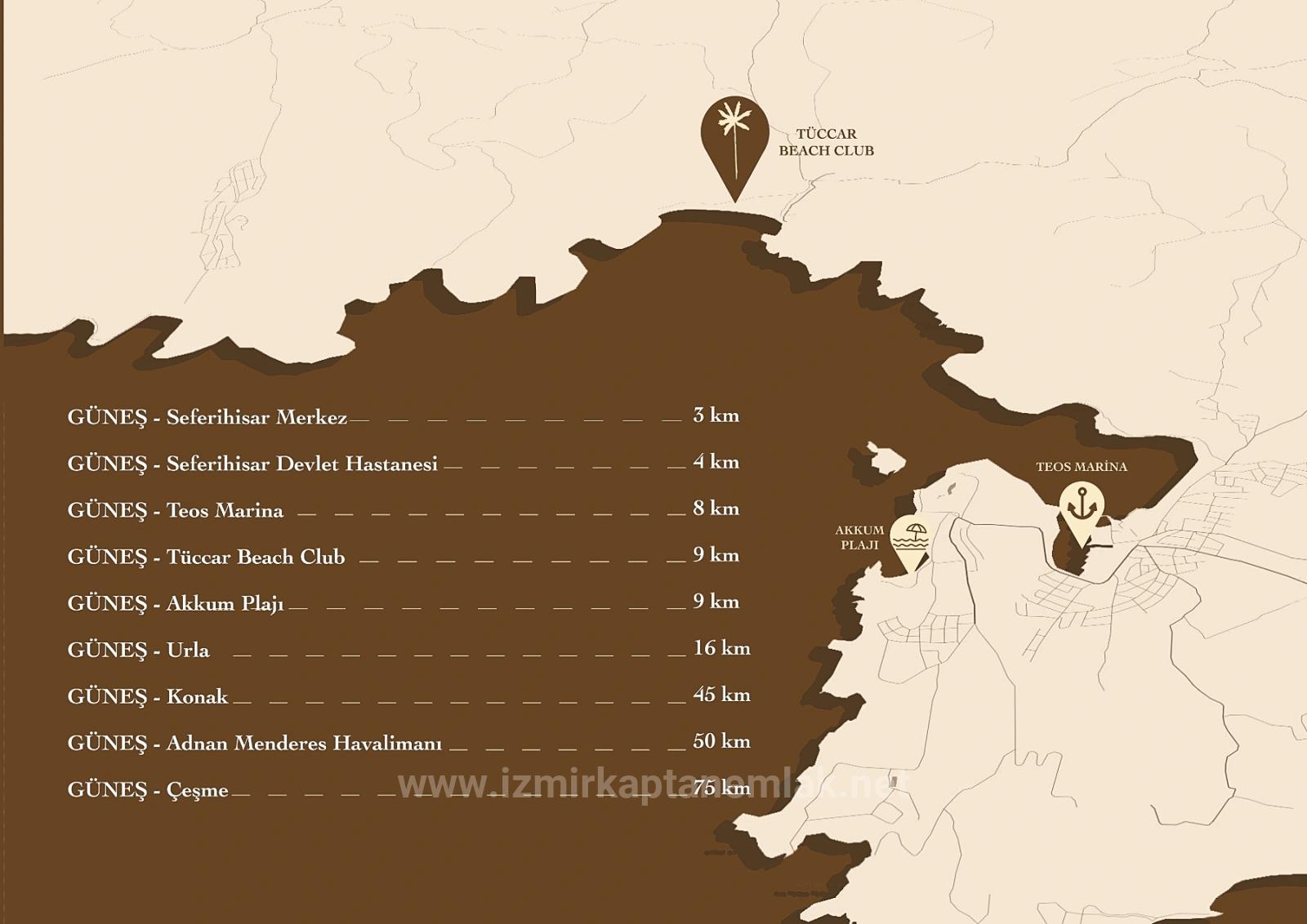 · Entfernung nach Çeşme beträgt 75 km.