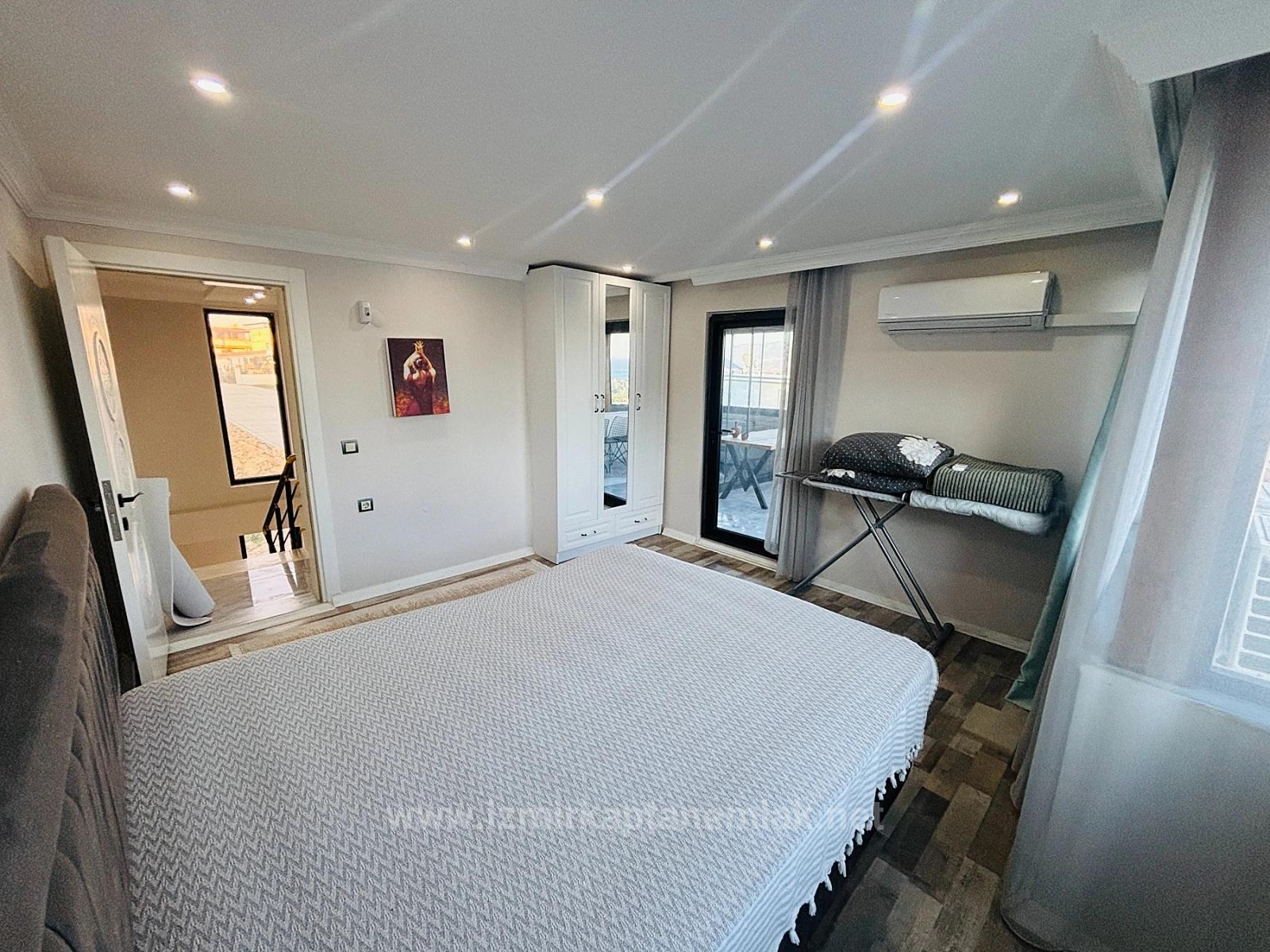 İZMİR SEFERİHİSAR ATATÜRK MAHALLESİ’NDE EŞYALI DENİZ MANZARALI HAVUZLU 4+2 TRİPLEKS YAZLIK VİLLA